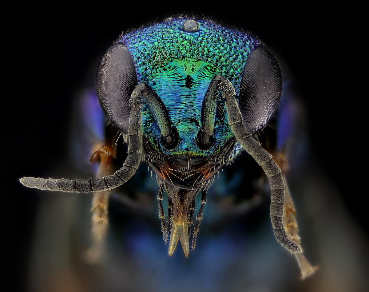 I just had to take some new insect micro photos again. This one is a potrait image of a cuckoo wasp (Chrysis sp.)